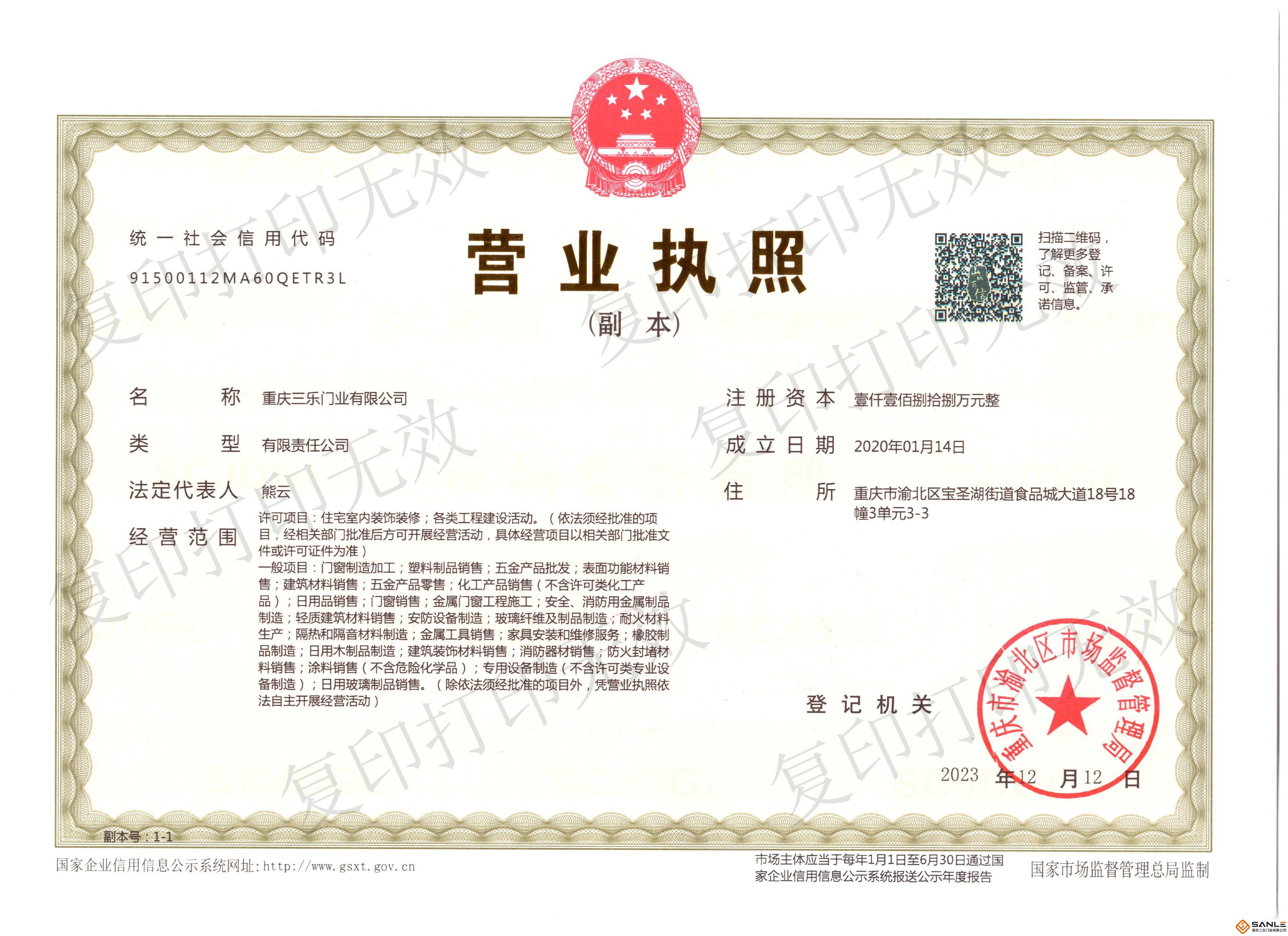 重慶三樂門業(yè)有限公司,位于重慶市渝北區(qū)食品大道廣告產(chǎn)業(yè)園,目前廠址已搬遷至重慶長(zhǎng)壽區(qū)工業(yè)園。注冊(cè)資本1188萬元 ,員工100余人,公司實(shí)力雄厚,公司擁有先進(jìn)的生產(chǎn)設(shè)備及流水線。